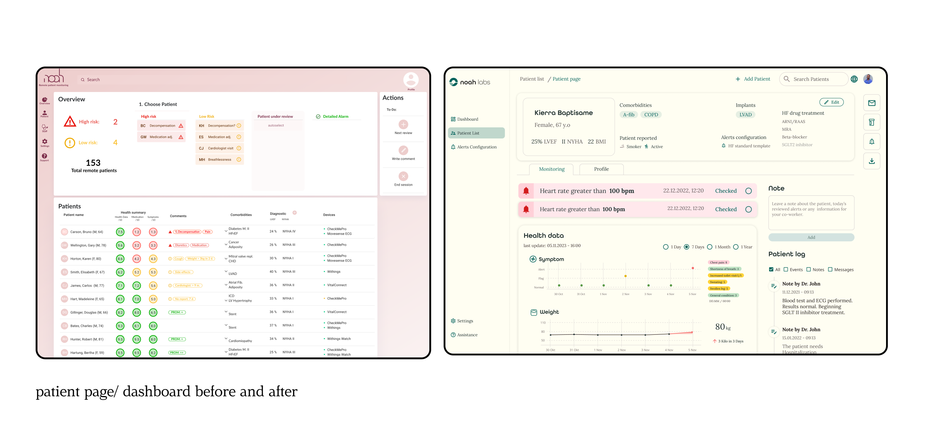 To gain deeper insights, a competitive analysis was conducted, followed by in-depth interviews with 5 doctors and 3 nurses. These participants, from both hospital settings and private practices, shared their experiences with heart failure patients. Conversations highlighted challenges in tracking patient symptoms, desired features, and frustrations with existing tools and methods.