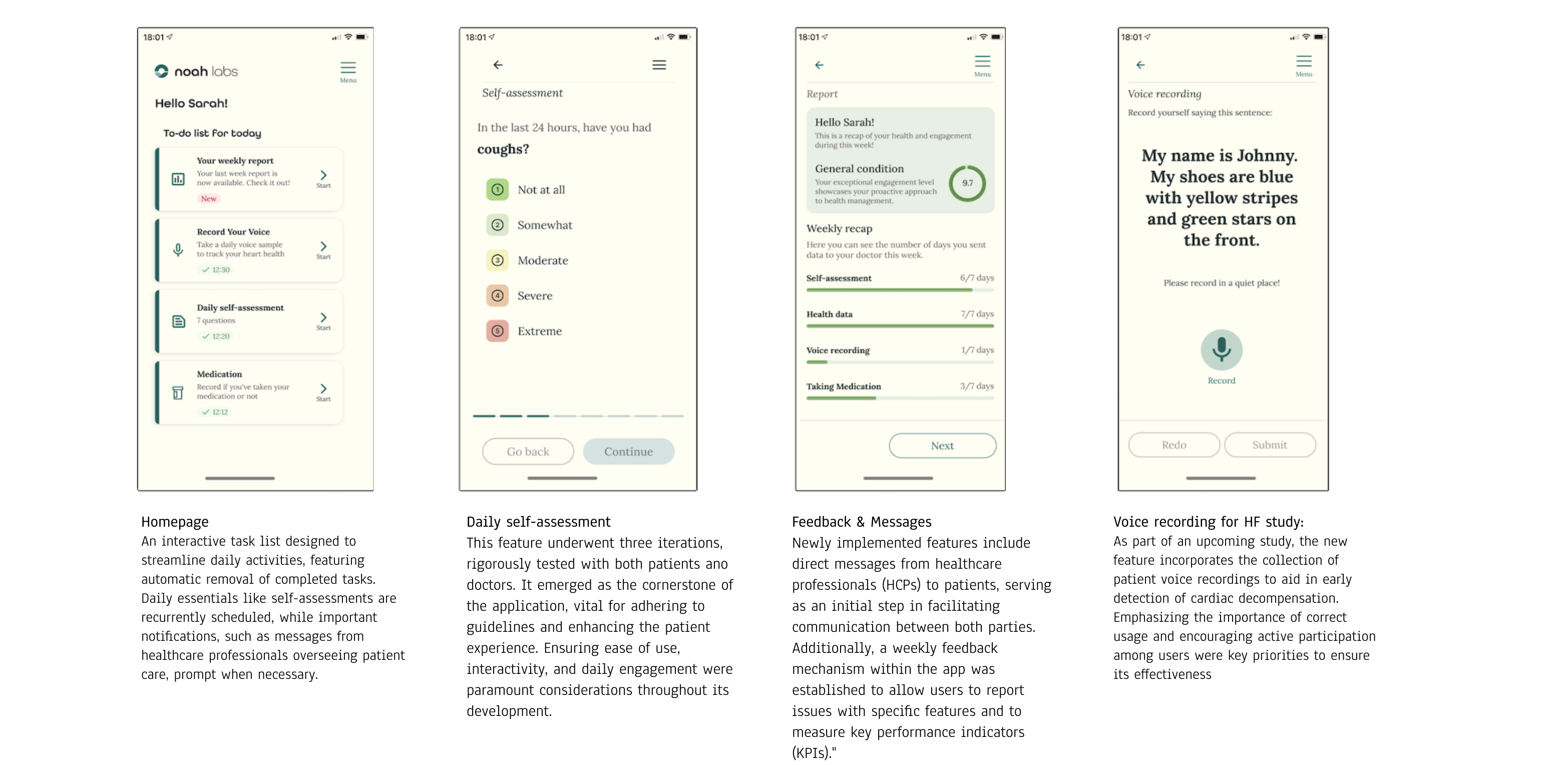 The MVP B2C app was developed specifically for heart failure (HF) patients, with an emphasis on making daily symptom monitoring simple and effective. A competitive analysis revealed key gaps in existing solutions, such as the need for a more intuitive daily tracking process.